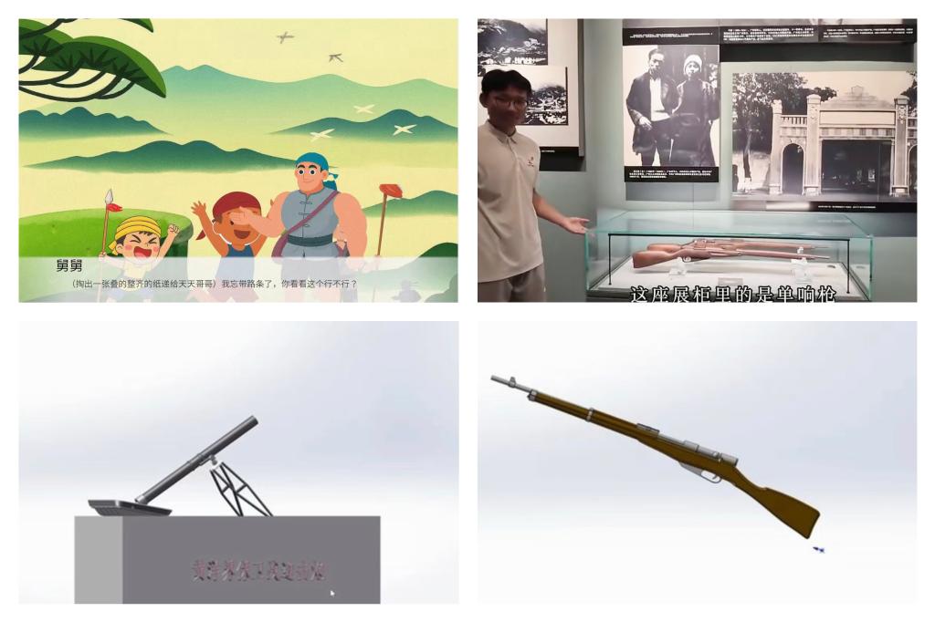 数字化赋能,构建红色文化传播新范式。“数字赋能红色传承”是团队的核心探索。电子绘本依托“故事情节+微课讲解+机械模型”三位一体模式,深度融合机械专业特色,实现协同增效。绘本以井冈山革命旧址为实景原型,结合中小员工年龄特点与审美偏好进行绘画二次创作;“红砖”微课堂视频拍摄与机械模型制作均基于实地取景和精准测量,最终形成三大板块、11 个模型,彻底摆脱“无实物讲解”的局限,让中小员工在阅读故事时,既能拓展历史背景知识,又能直观认知重要历史机械,实现“一本多效”。“将井冈山故事融入电子绘本,以“绘本+微课+模型”的多维方式让红色文化鲜活起来,在寓教于乐中培育中小员工历史文化素养。”团队指导老师吴琼说道。