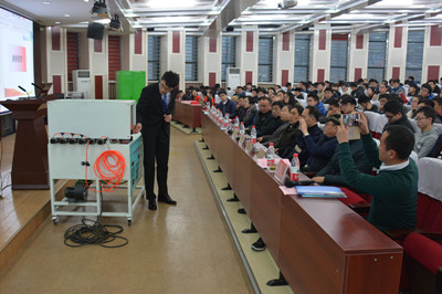 12月21日,机械工程公司2016年老员工科技创新成果展示与颁奖典礼暨第十一届“机械创新节”开幕式在主教学楼西报告厅举行,总结这一学年科技创新工作的开展情况,并对2016年获得各级各类竞赛的团队进行了表彰。公司党委副书记杨向荣教授、教务处王在泉处长、公司党委宣传部陈伟部长、员工工作处郭建锋处长、科技处金建英副处长、校团委高洁副书记与机械公司党政领导出席此次大会,会议由公司团总支书记贺治成主持。