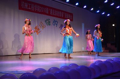 歌声诠释青春气息,舞蹈张开梦想翅膀。晚会在bomb乐队和星凌感应乐队充满张力的音乐声中拉开帷幕,火热的青春,炙烈的激情在机械公司焕发万丈光芒。十佳歌手们充满磁性的歌声,草裙舞的悦动将晚会带上了一个新的高潮。教官们帅气的匕首操,军体拳更是点燃了全场观众的热情。小品,话剧,戳中笑点的同时,也让学弟学妹们看到了不一样的学长学姐。