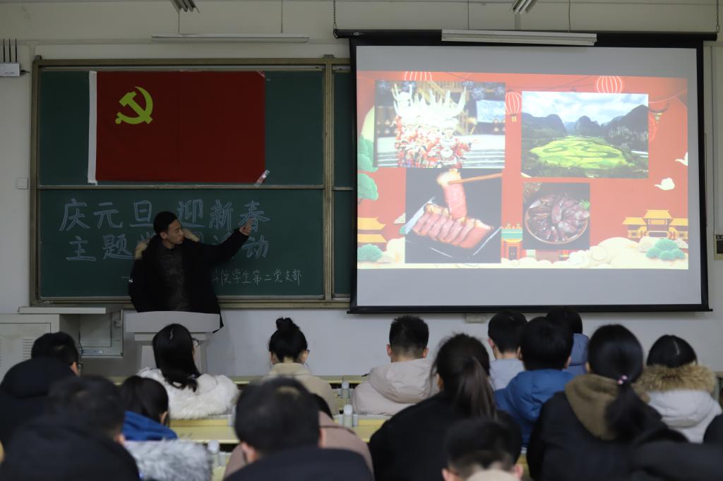 分享趣味年俗,拓宽文化视野。党员李俊皓分享了家乡贵州的年俗,而芦赛分享的是家乡过年期间喝羊肉汤的习俗。“周而复始,年轮交替,元旦是岁之元、月之元、时之元,这不仅是我们回首过去的日子,也是站在新的起点继续勇敢向前的日子。年俗是一种文化遗产,我们要时刻以最饱满的激情去传承,把中华民族优秀的传统文化发扬光大!”支部书记丁于娟总结道。