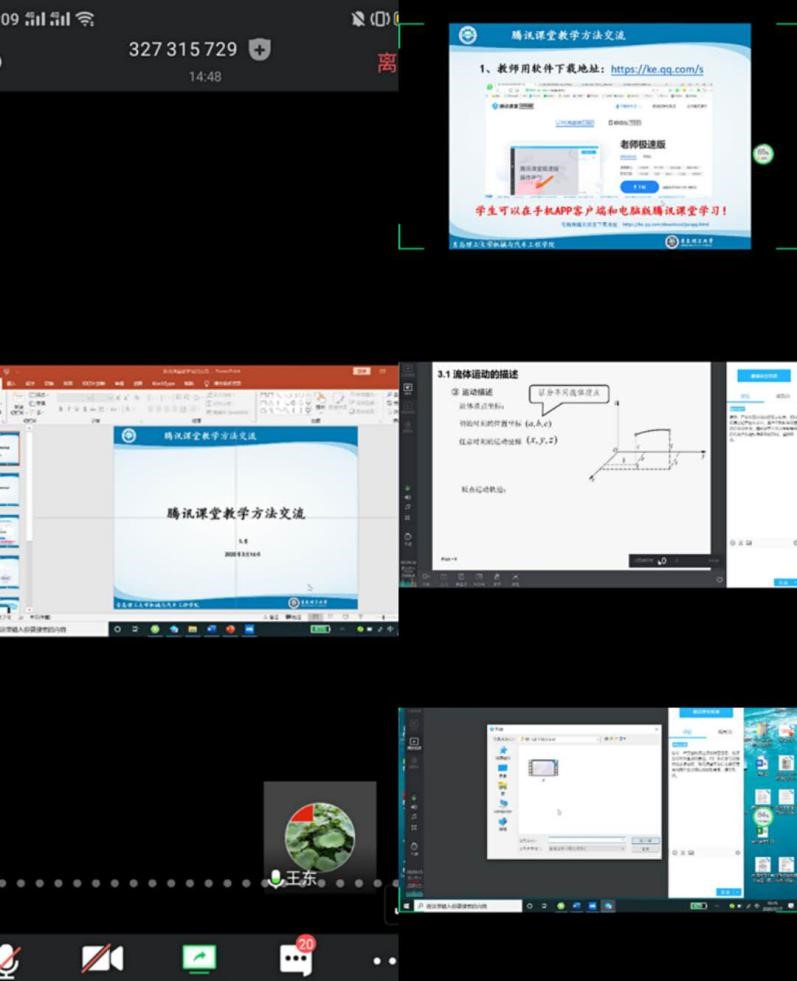 上午10时,全院教师如约而至,共同在腾讯会议云端参加了这次特殊的培训交流会。首先,郭峰经理讲话,对大家在疫情期间在线教学所付出的努力工作表示肯定,同时指出,线上教学既是目前疫情时期的一种特殊的教学方式,也为将来实现线上线下混合教学做好准备。接着,公司教师王东为大家介绍腾讯课堂平台使用与技巧,王东从腾讯课堂软件的下载安装到功能介绍,详细的通过PPT为大家进行了讲解,并将自己利用该软件上课的操作流程通过屏幕共享为大家一一展示;孟娟分享了智慧树平台与混合式教学经验,并以自己的《建筑施工安全》课程教学为例,详细的介绍了该课程通过智慧树平台,完成从课前导学—在线学习—作业测验—总结反馈的教学过程。最后进入线上自由讨论环节,各位教师就线上教学遇到的问题互相沟通交流,提出解决方案。