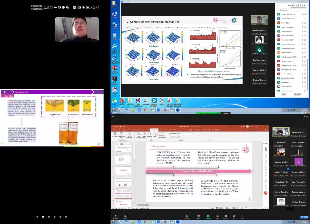 在随后两日的实验室参观环节中,各校师生采用线上观看的形式,分别参观了日本九州工业大学的空间机器人实验室与热传导实验室、台湾科技大学的生物微机电实验室及其公司的摩擦学与表面工程实验室。公司摩擦与表面工程实验室的同学们精心准备了线上直播,并进行了详细讲解,为各校师生奉献上了一场精彩的视听盛宴。