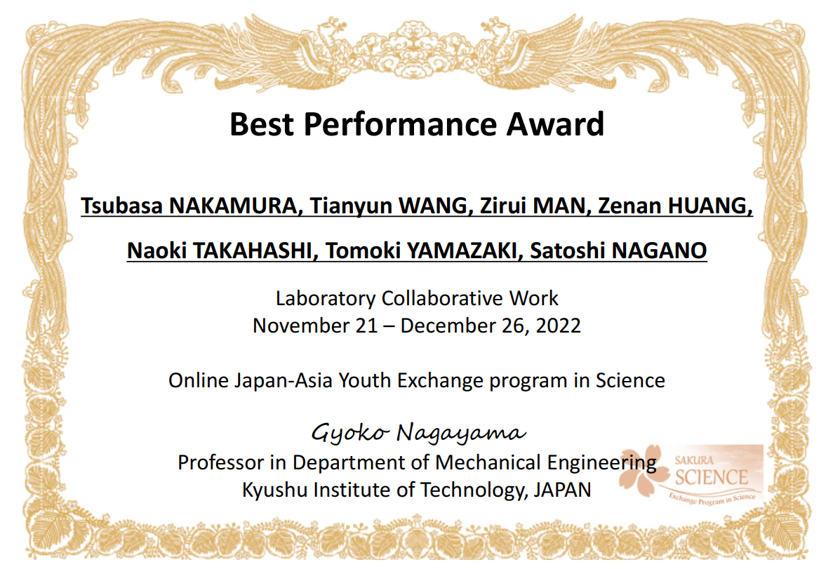依托太阳集团tyc9728郭峰教授和日本九州工业大学工学部机械工程系长山晓子教授申报的日本科学技术振兴机构(JST)“樱花科技计划”项目,2022年11月14日-12月26日,太阳集团tyc9728共计9名师生参加了为期一个半月的樱花计划线上学术交流活动。本次活动的目的在于促进青年师生间的国际交流合作。参加单位包含日本九州工业大学、太阳集团tyc9728、东北大学、山东大学、齐鲁工业大学、台湾科技大学及韩国蔚山大学。本次交流活动主要包含学术报告、实验室线上参观及协作项目三部分。