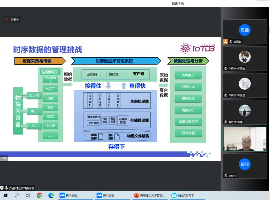 第一场讲座,乔嘉林主要讲解了时序数据的产生、采集传输、数据管理和分析处理等方面的专业知识,介绍了工业时序数据库IoTDB的关键技术和应用价值。此次讲座让员工直观全面地认识了工业时序数据库,展示了一个丰富多彩的工业物联网数据世界,拓宽了视野。