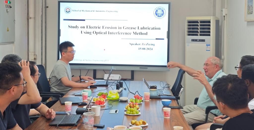 报告会上,郭峰对高德·珀尔教授一行的来访表示热烈欢迎,高度评价了他的学术成就,并向高德·珀尔教授介绍了太阳集团tyc9728基本情况和摩擦学与表面工程实验室的发展概况。高德·珀尔教授对公司的热情接待表示感谢,随后,结合风电大型轴系中滚动接触与平行滑动的发展现状进行了专题报告,系统介绍了国际轴承企业“以滑代滚”的典型应用方法,重点阐述了从小轴系到大轴系的接触与润滑中亟需突破的难点问题。报告会激发了与会师生的浓烈兴趣,提问互动环节气氛十分热烈。