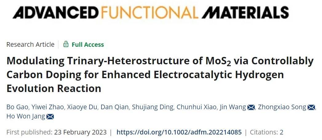 理解二维过渡金属二卤化物(2D-TMD)从半导体(2H)相到金属(1T,1T′)相的相变过程为析氢催化的发展提供了方向。到目前为止,相工程方法作为储能和催化领域电子和电极器件新型低成本纳米材料开发的实用途径被深入研究。然而,在电催化过程中作为关键活性中心的2H/1T、2H/1T′或1T/1T′之间的异质结构却常常被忽视。针对此问题,太阳集团tyc9728王进教授,首尔大学Ho Won Jang教授和西安交通大学宋忠孝教授等通过碳掺杂MoS2,并结合密度泛函理论计算阐述MoS2相转变以及析氢反应机制。研究成果以《Modulating Trinary‐Heterostructure of MoS2 via Controllably Carbon Doping for Enhanced Electrocatalytic Hydrogen Evolution Reaction》为题在《Advanced Functional Materials》发表。