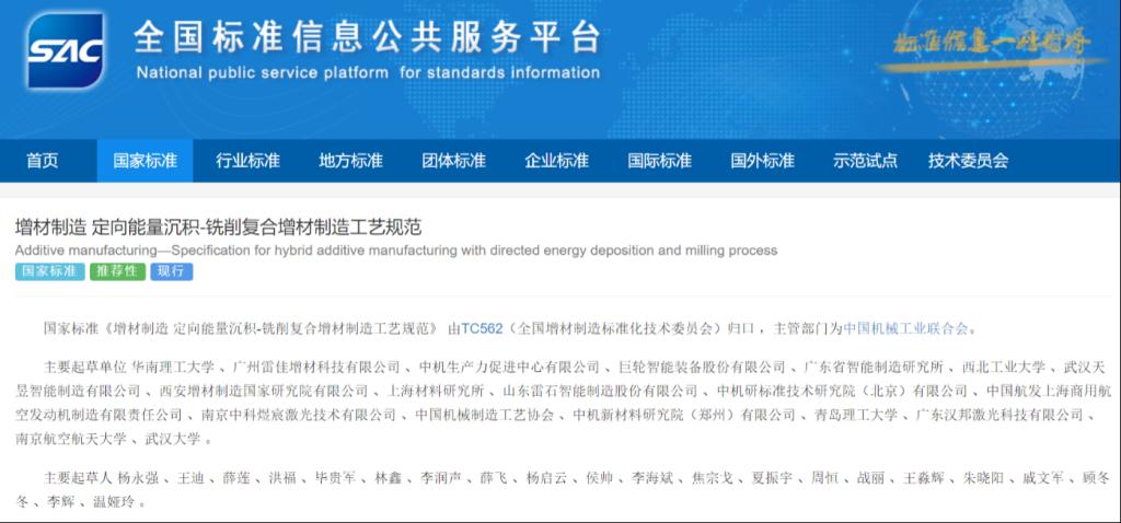 3)GB/T 42621-2023 增材制造 定向能量沉积-铣削复合增材制造工艺规范。