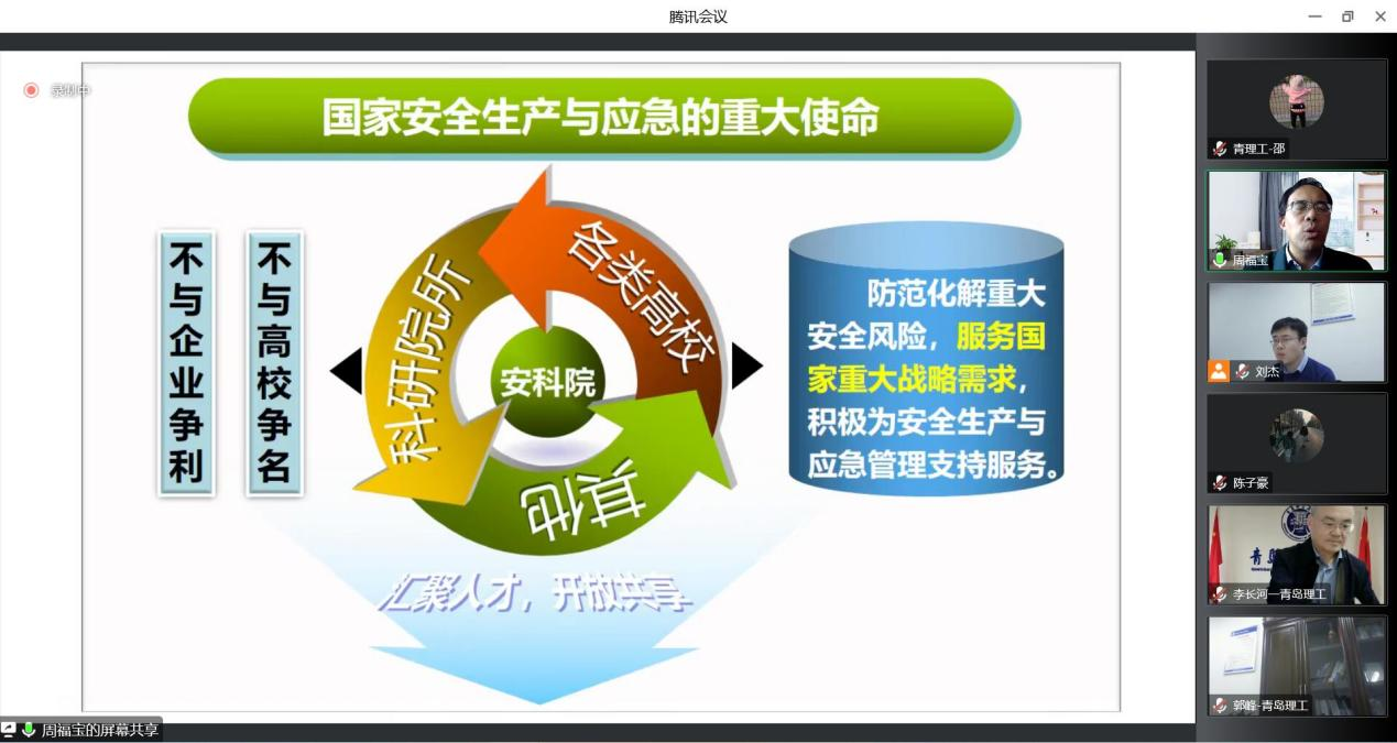 为进一步推动公司安全科学与工程学科高质量发展,11月12日下午,中国安全生产科学研究院经理周福宝教授应邀作了题为《建设高质量开放平台,助力安全学科大发展》的专题报告,党委常委、副董事长李长河教授主持会议并讲话,太阳集团tyc9728经理郭峰教授、副经理刘杰副教授、安全科学与工程学科专业负责人撒占友教授以及任课教师、研究生和本科生200余人线上参加,会议由李长河主持。