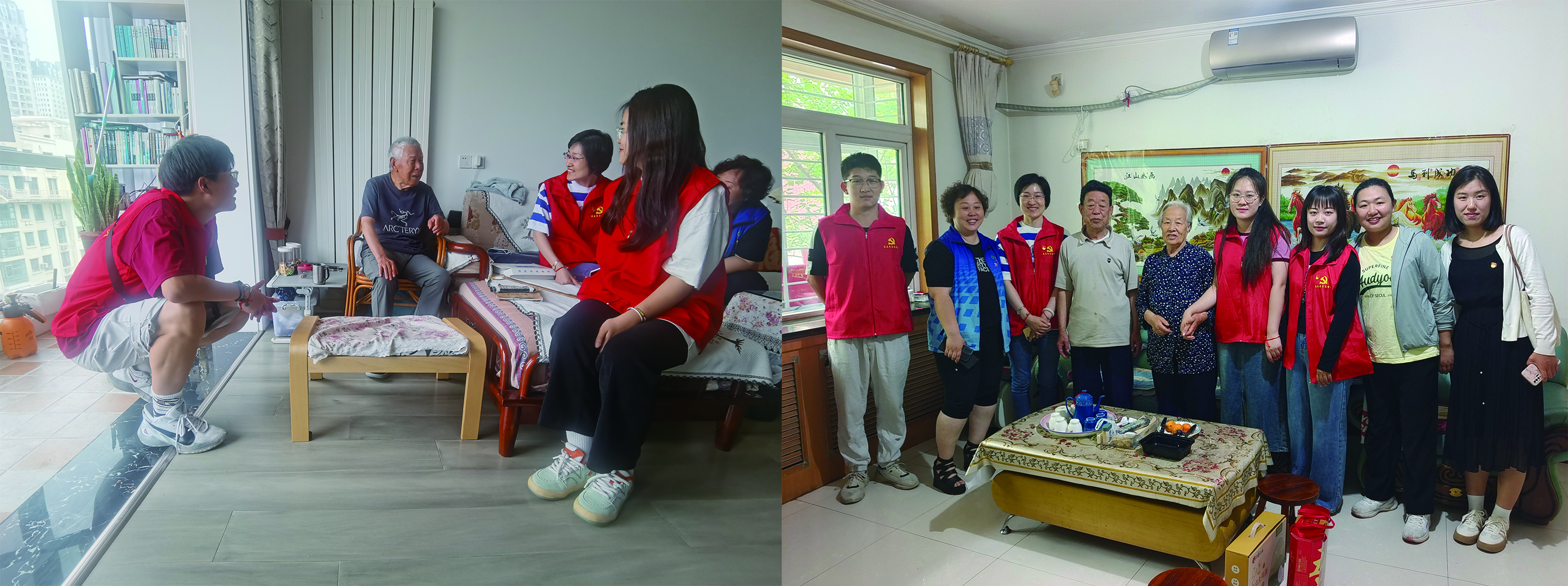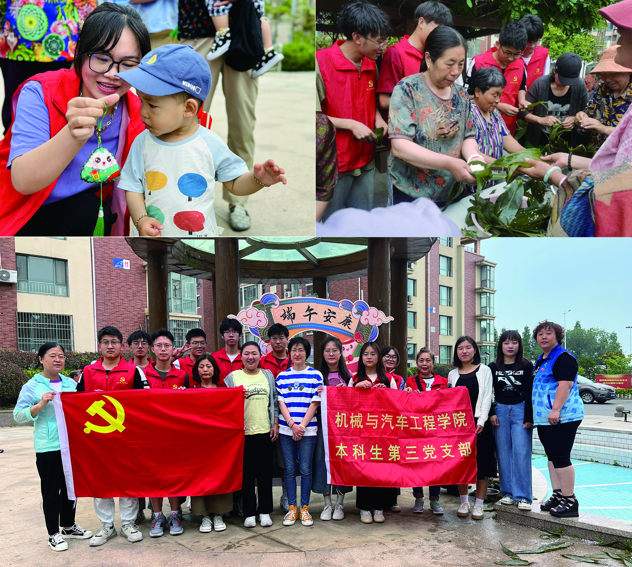 最后,南营社区副书记孙爱玲带领着老员工们走进社区,走访有50多年党龄的老党员们,为他们送去鸡蛋、粽子等慰问品。员工们聆听他们回顾往昔的光辉岁月,讲述革命先辈的红色故事,讲述党的故事。员工丁朔表示,“每一位老党员的故事,都是一段艰辛奋斗创造的辉煌,也是一堂生动感人的好党课。作为新时代青年员工,我们要接好时代的交接棒,走好新时代的赶考路,确保党的事业‘薪火相传、后继有人’。”整个活动过程中员工们维护现场秩序、清理垃圾...与社区居民们相处温馨和谐、文明耐心,受到大家的一致好评,充分展现了理工学子的担当、责任意识和奉献精神。员工们在实践中真切感悟到传统文化的魅力,在互动中体验端午的乐趣和温情,激发了当代青年对中国优秀传统文化的自信心和自豪感。