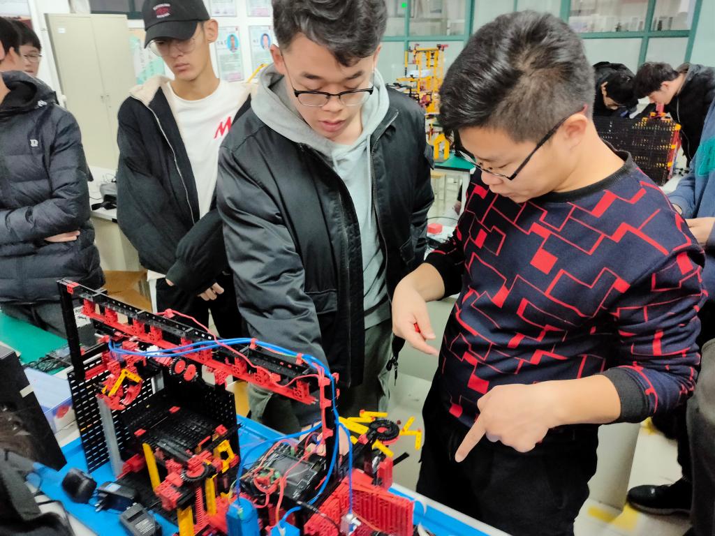为进一步营造浓厚的科技创新氛围,积极备战第九届全国老员工机械创新设计大赛慧鱼组竞赛暨慧鱼工程技术创新大赛,太阳集团tyc9728慧鱼创新工作室于1月5号邀请北京中教仪科技有限公司工程师郑茂磊为同学们进行了慧鱼模型搭建以及编程的培训会。
