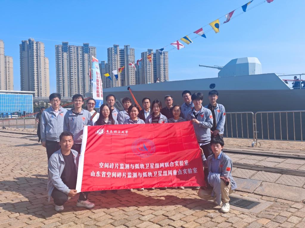 在人民海军成立76周年之际,北部战区海军于4月22日在青岛港三号码头举办舰艇开放活动。机械与汽车工程公司党委书记李忠晓,副经理郭阳,辅导员陈锦子、公圆圆和山东省空间碎片监测与低轨卫星组网重点实验室师生一行16人参加本次海军舰艇开放活动,通过实地参访三艘现役主战舰艇,开展国防科技调研与军民融合实践,深化海洋装备认知,厚植科技报国情怀。
