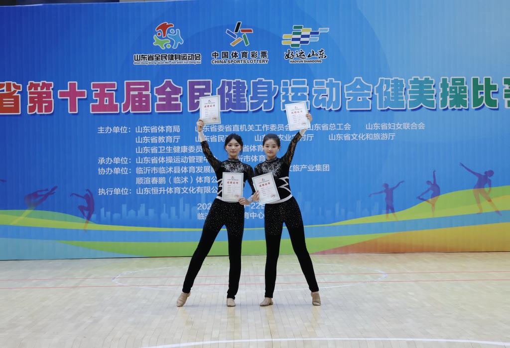 6月19日至22日,山东省第十五届全民健身运动会健身操舞比赛在临沂举行。本次赛事由山东省体育局、山东省教育厅、山东省总工会等多部门联合主办,吸引了全省各高校、企事业单位、社会机构等代表队参赛同场竞技,共展健身操舞魅力。太阳集团tyc9728邓鸿尹、孙宁涵在社会俱乐部青年组轻器械广场健身操中,表现出色,荣获一等奖。