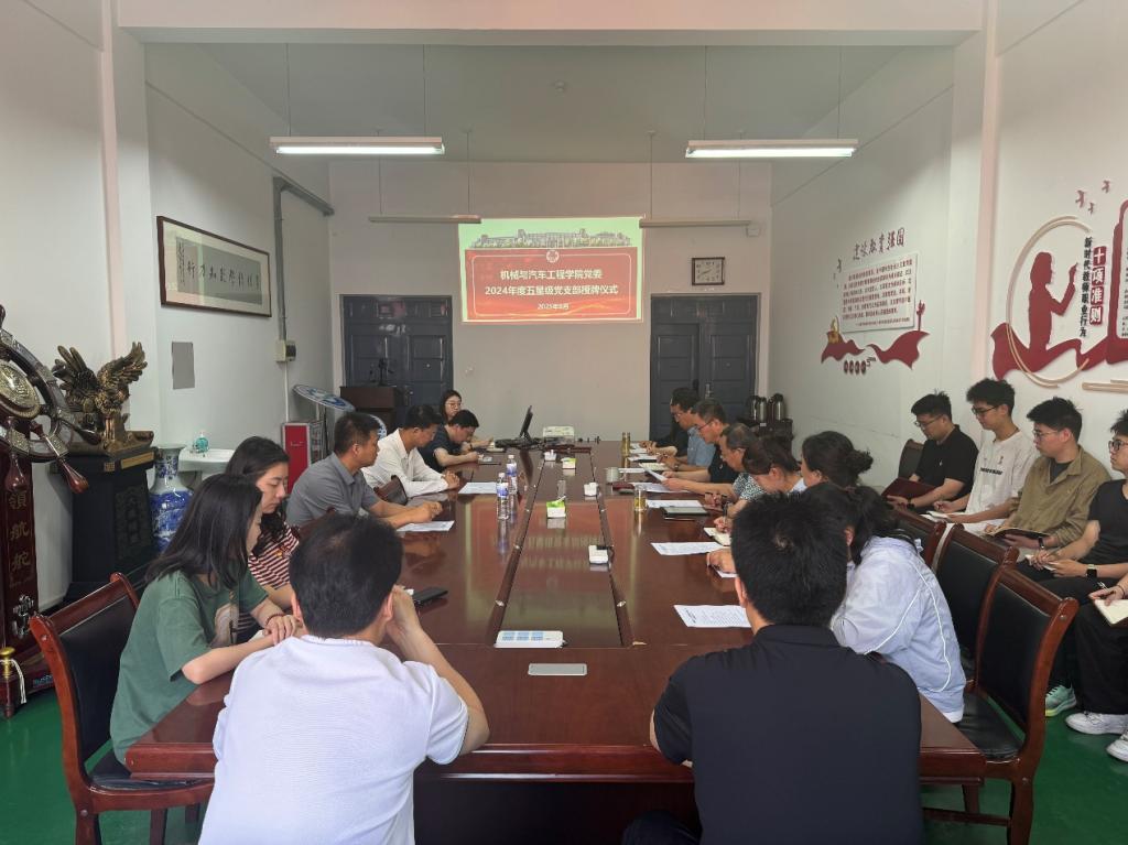 6月25日上午,机械与汽车工程公司党委在汽车实验楼408会议室举行2024年度五星级党支部授牌仪式。公司党委副书记、董事长张凯参加仪式并为五星级党支部授牌,公司党委书记李忠晓主持仪式,公司党委班子成员、专兼职组织员以及全体党支部书记等参加仪式。