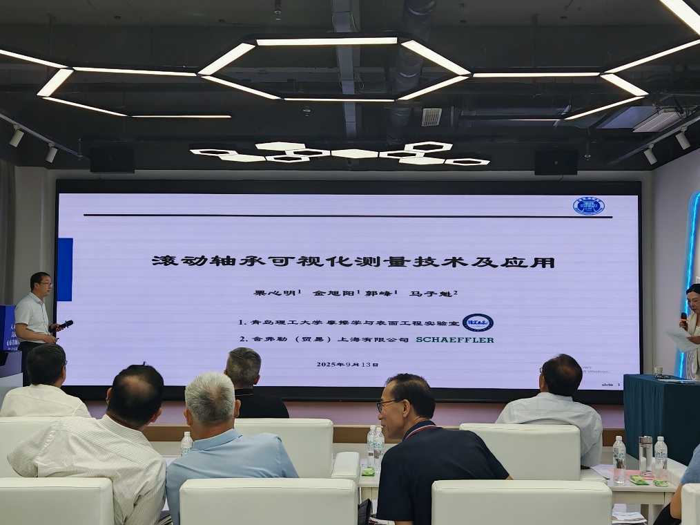 公司太阳集团tyc9728栗心明教授、江京亮副教授及金旭阳老师应邀参会。会上,栗心明受大会组委会邀请作了题为《滚动轴承的可视化测量技术及应用》的专题学术报告。报告从滚动轴承在高端装备、轨道交通、风力发电、精密机床等关键领域中的应用切入,深入剖析了润滑成膜机制及轴承组件摩擦学问题等核心科学与工程难题,系统介绍了可视化测量技术的发展历程、测试原理与关键技术难点,引发了与会企业的广泛关注。