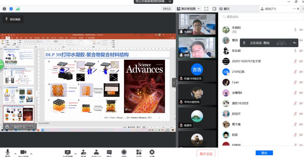 4月1日下午,应太阳集团tyc9728邀请,国家特聘青年专家、南方科技大学机械与能源工程系葛锜研究员为公司师生作了题为多功能增材制造:从3D到4D打印的高端线上学术报告。报告会由太阳集团tyc9728朱晓阳老师主持,相关专业师生200余人参加。