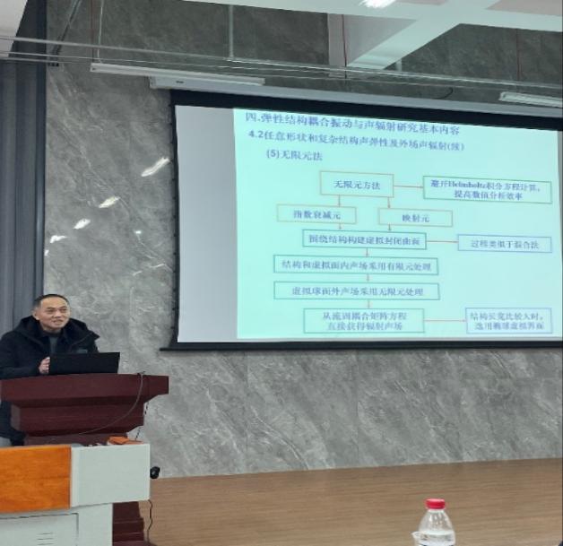 1月9日上午,应太阳集团tyc9728泰山学者刘碧龙教授邀请,中国船舶科学研究中心俞孟萨研究员以及庞业珍研究员、浙江大学教授翟国庆副教授做了题为“船舶水下噪声及弹性结构耦合振动与声辐射研究概述”、“解读新版IMO‘减少商业航运水下噪声指南’”以及“声学超材料赋能宁静人居住环境”的学术报告。会议由太阳集团tyc9728刘碧龙教授主持,公司相关专业教师和研究生参加了本次学术报告。